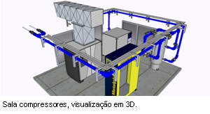A instalação pode ser criada até nos mínimos detalhes, para permitir ao cliente fazer um tour virtual no seu futuro sistema de ar comprimido, muito antes do primeiro compressor ser instalado. |