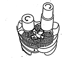 Um compressor parafuso típico, selado com óleo, é uma máquina de deslocamento positivo que possui dois rotores acoplados, montados em mancais para fixar suas posições na câmara de trabalho numa tolerância estreita em relação à cavidade cilíndrica. O rotor macho tem um perfil convexo, ao contrário do rotor fêmea, que possui um perfil côncavo. A forma básica dos rotores é semelhante à uma rosca sem-fim, com diferentes números de lóbulos nos rotores macho e fêmea (Figura 1). Freqüentemente, os rotores macho têm 4 e os fêmeas 6. Alguns compressores com tecnologia mais recente, possuem a configuração 5+7. Qualquer um dos dois rotores pode ser impulsionado pelo motor. Quando o rotor fêmea é acoplado ao motor com uma relação entre os lóbulos de 4+6, a capacidade é 50 % maior que o acoplamento feito no rotor macho, sob as mesmas condições. O torque é transferido diretamente de rotor para rotor e o sentido da rotação é fixo. O dispositivo de acionamento é geralmente conectado ao rotor macho, e este aciona o rotor fêmea por meio de uma película de óleo. |